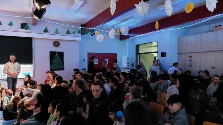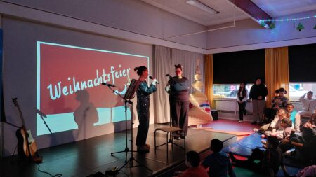 Es wurde gesungen, gelacht und und dieses Jahr auch gerätselt. Die ganze Schule traf sich in der Aula und feierte die gemütliche und frohe Weihnachtszeit mit tollen Lieder.