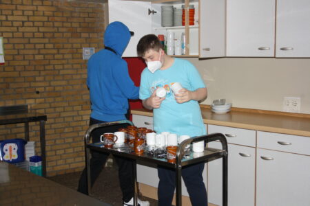 eine Gruppe von Schülerinnen und Schülern Brötchen für die gesamte Schule. Anschließend wird die Ware ausgeliefert. Angeleitet wird das Projekt von Herrn Simonsen. Er ist ein echter Experte, da er vor seinem Erzieherberuf als Bäcker gearbeitet hat.