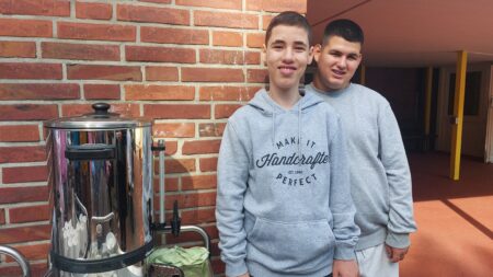 Dann wurden alle neuen Kinder von ihren Klassen aufgerufen. Es wurde eine große Sonnenblume überreicht und zum ersten Mal ging es für kurze Zeit in die Klassenzimmer. Die Familien warteten derweil auf unserem Schulhof und wurden von den Oberstufenschülerinnen und – schülern mit Kaffee, Wasser und Gebäck versorgt und freuten sich beim Wiedersehen über fröhliche Kinder.