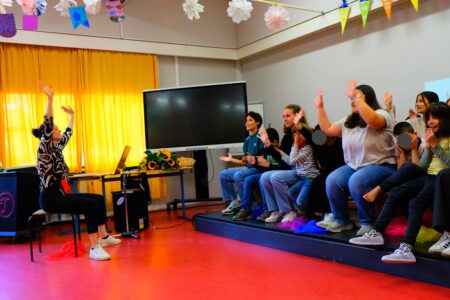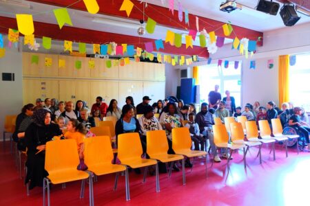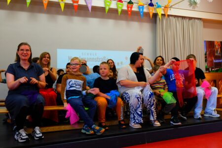 Es gab eine schöne Einschulungsfeier für die neuen Schulkinder: in der bunt geschmückten Aula haben die Unterstufenklassen haben zwei Lieder gesungen. In zwei kurzen Filmen wurde gezeigt, was man in der Schule Marckmannstraße alles so machen kann.